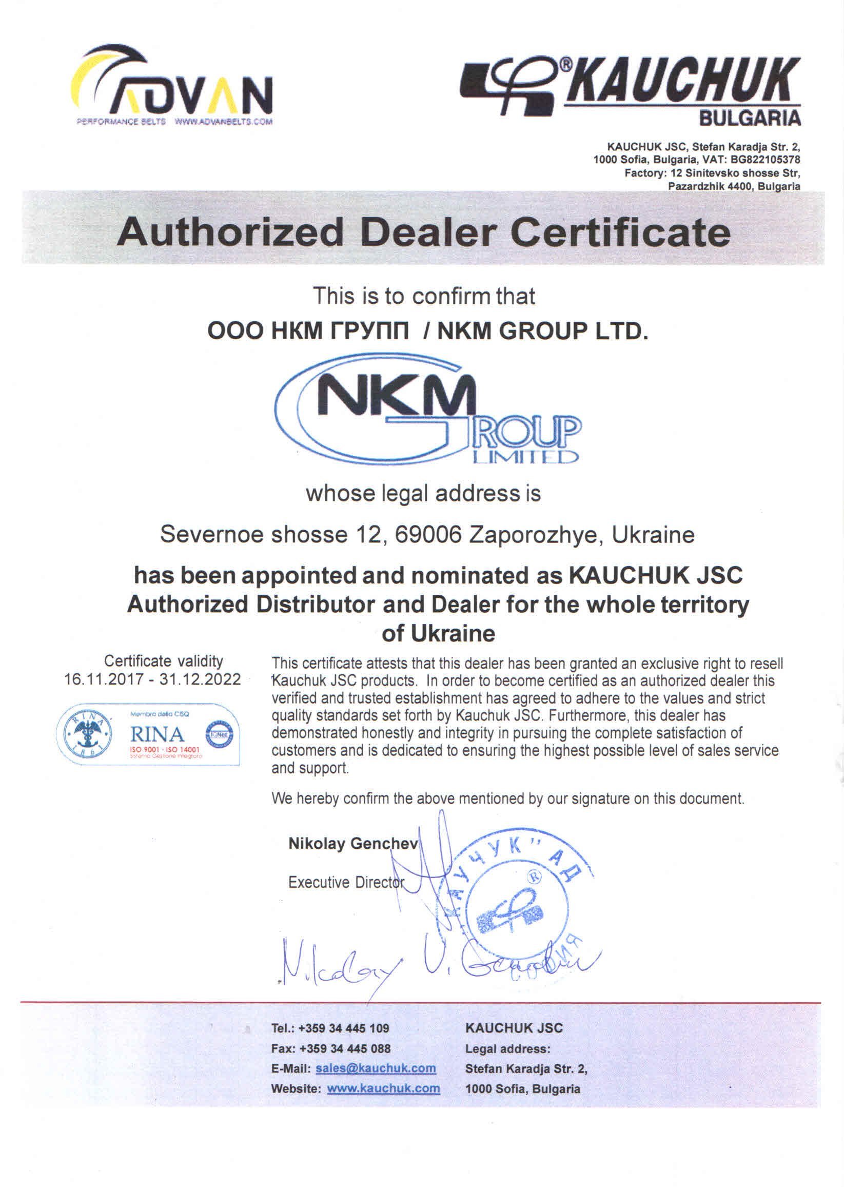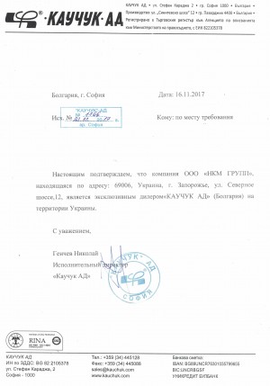 - ексклюзивним представником компанії «Каучук» (Болгарія) (конвеєрні стрічки),